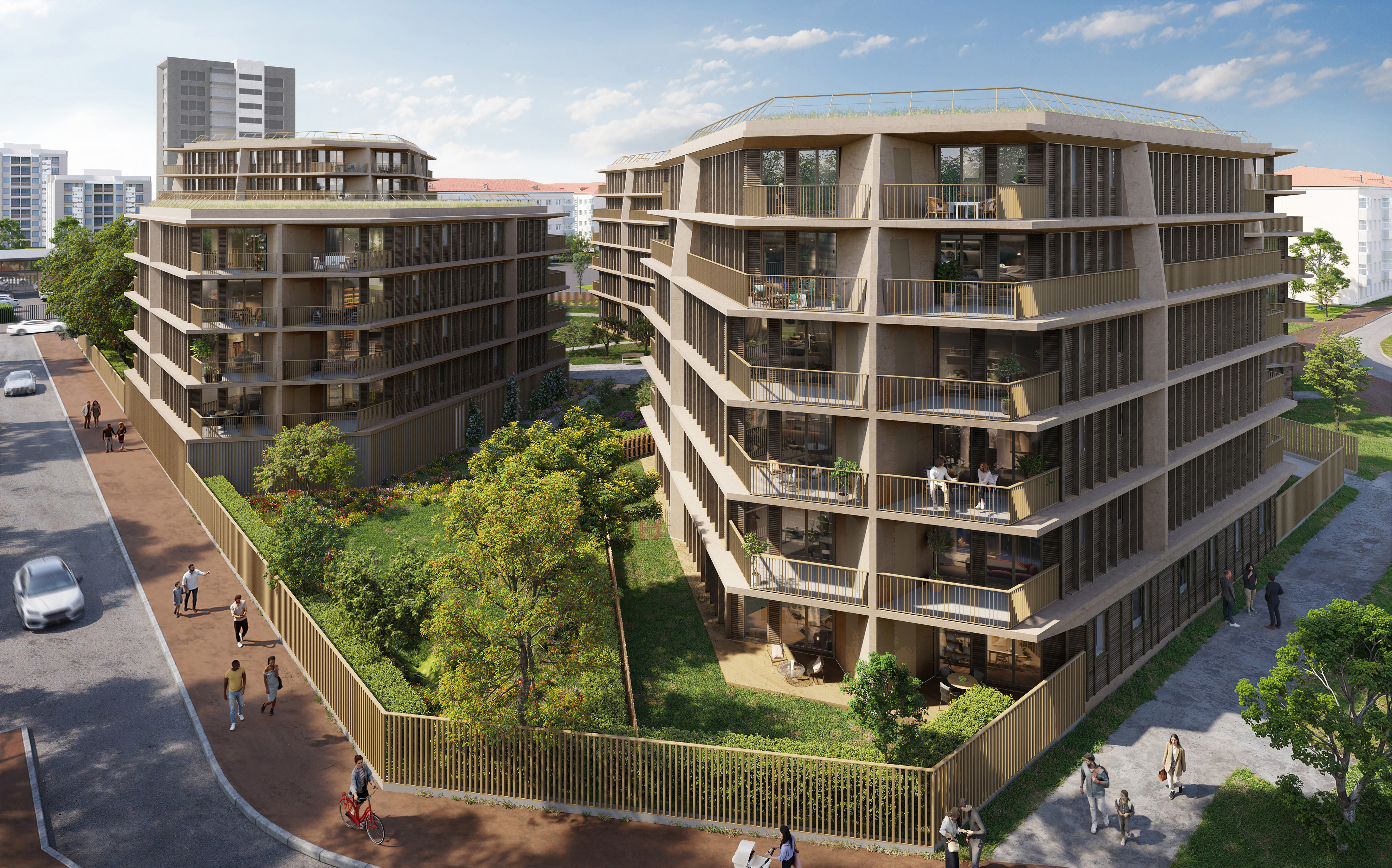 Fruit de la collaboration entre l'architecte Tom Darmon et Spie Batignolles Immobilier, cet ensemble résidentiel se distingue par cinq bâtiments à l’écriture architecturale contemporaine, finement sculptés pour s’intégrer dans la trame urbaine. Véritable modèle de durabilité, le projet répond aux exigences de la RE2020 (seuil 2025) et bénéficie de la certification NF Habitat HQE "Très Performant". La résidence s’organise autour d’un exceptionnel poumon vert de 3 600 m², proposant jardins partagés, potagers et un square propice aux échanges. Chaque appartement a été pensé pour le bien-être, offrant des prestations soignées et de larges espaces extérieurs privatifs ouverts sur la nature environnante.