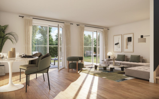 La résidence s'implante dans un secteur calme, à proximité immédiate des berges de Seine et du centre-bourg. Le quartier se caractérise par sa dimension bucolique, avec un accès facile au parc du Docteur Fauvel et aux sentiers boisés. Les résidents profitent d'une vie locale riche avec des commerces de proximité, un marché hebdomadaire sous la halle et des infrastructures sportives de qualité (tennis, golf, club nautique), tout en restant à quelques minutes des accès autoroutiers A13 et A14.